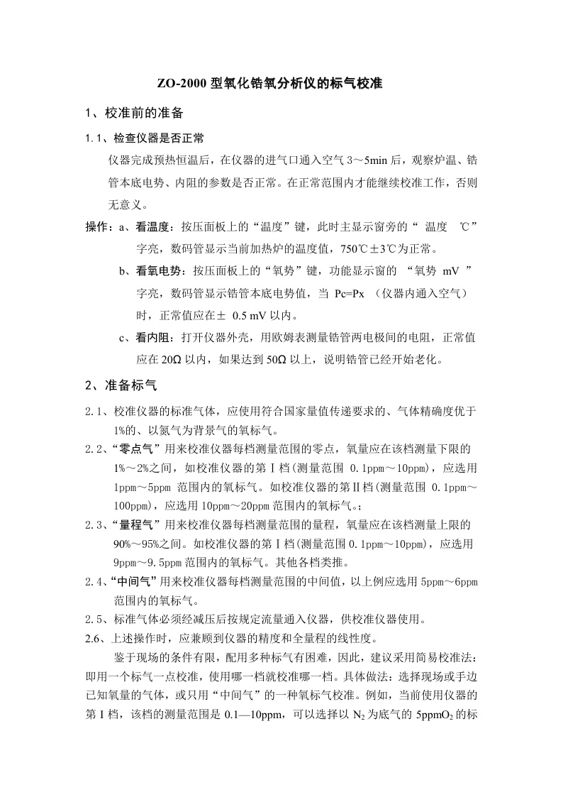 ZO-2000氧分析儀的標(biāo)氣校準(zhǔn)