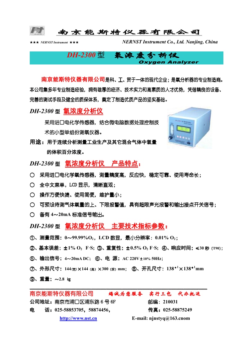 DH-2300型氧濃度分析儀單頁(yè)簡(jiǎn)介