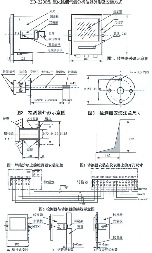 ZO-2200型 氧化鋯煙氣氧分析儀器外形及安裝方式